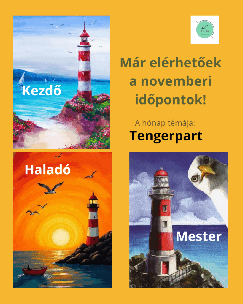 Novemberben különösen jól esik egy kis kiszakadás a hétköznapokból. A hónap élményfestésein három markáns, mégis egymást jól kiegészítő téma közül választhatsz: nyugodt tengerpartok, karakteres világítótornyok és hangulatos, játékos Halloween-képek.