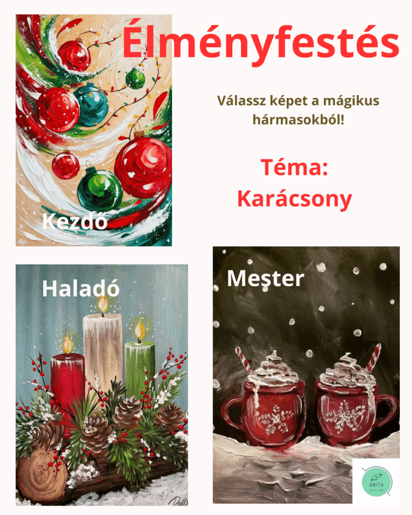 A december az év legzsúfoltabb időszaka – épp ezért különösen jólesik megállni egy délutánra, és csak az alkotásra figyelni. Az Anita Kreatív Stúdió decemberi élményfestései ezt a nyugalmat és feltöltődést kínálják, ünnepi hangulatban.