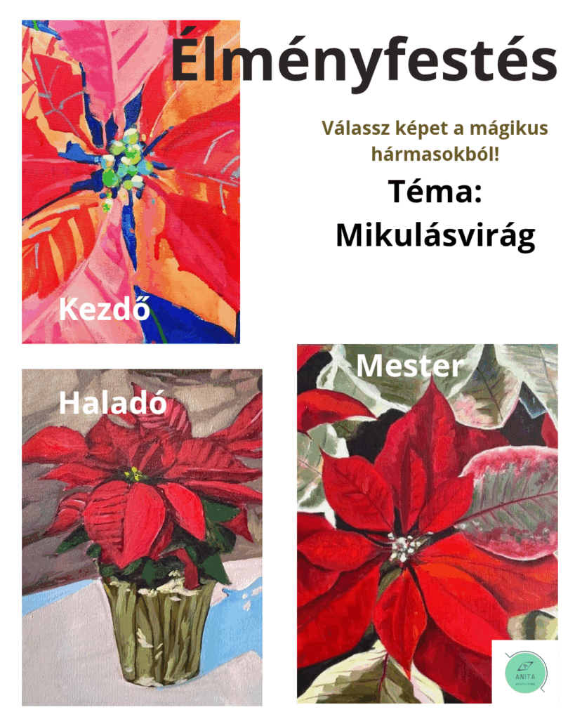 Kapcsolódó keresések: mikulásvirág festés, élményfestés nőknek Budapest, kreatív karácsonyi program Zugló