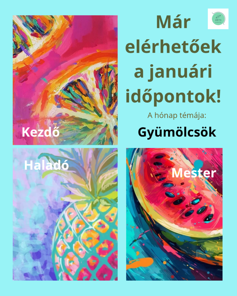 Ha szeretnél januárban kiszakadni a hétköznapokból, feltöltődni és alkotni, az Anita Kreatív Stúdió élményfestései pont ezt adják. A foglalkozások kis létszámúak, személyre szabottak, és akkor is bátran jöhetsz, ha még soha nem festettél.